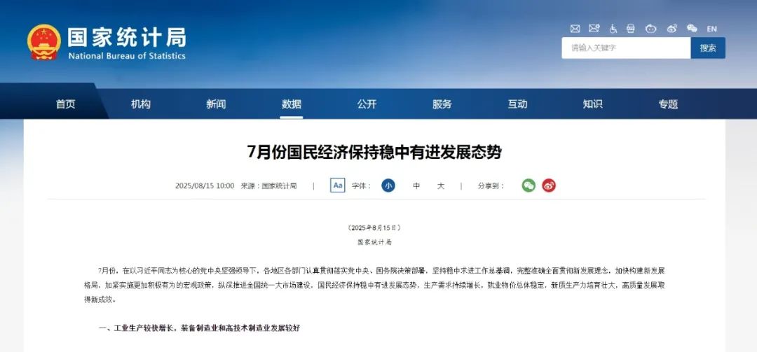 在今日举行的国新办例行发布会上,国家统计局新闻发言人、总经济师、国民经济综合统计司司长付凌晖介绍,7月份宏观政策发力显效,国民经济克服外部环境复杂多变和国内极端天气等不利影响,保持稳中有进发展态势,展现出较强韧性和活力。